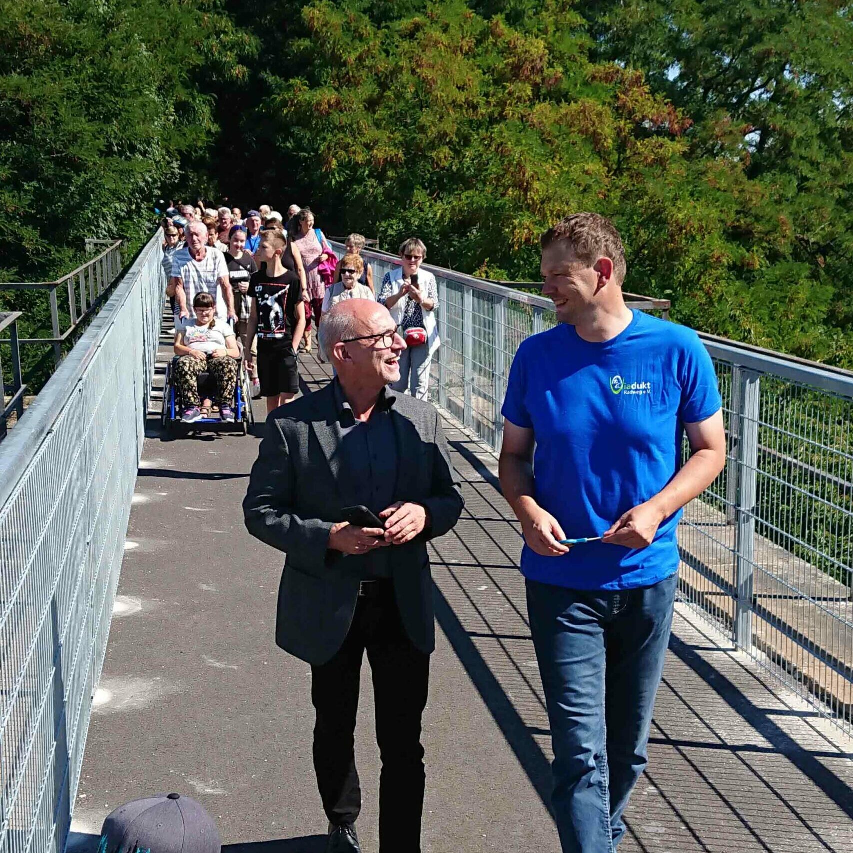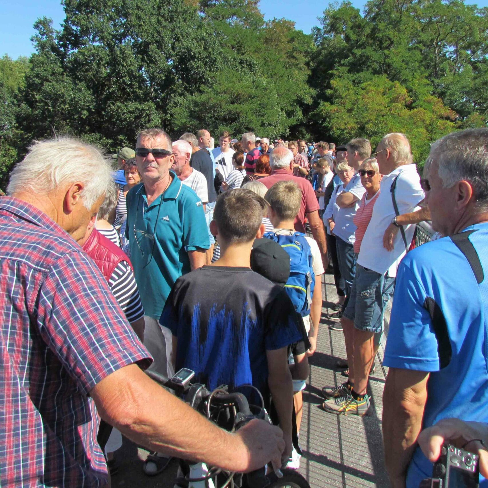 24°C, Sonnenschein von Sonnenauf- bis Sonnenuntergang und mehrere Hundert zufriedene Gesichter – das ist die Belohnung für 13 Jahre Ausdauer und Hartnäckigkeit. Am Samstag den 3.9. um Punkt 14.00 Uhr hat der Viaduktradweg e.V. das Nirkendorfer Viadukt der Bevölkerung als Wander- Radwegbrücke zur Nutzung übergeben. Und die Menschen strömten von nah und fern um dieses Ereignis hautnah mitzuerleben. Die Schalmeien aus Frohnsdorf, personell noch von Mitgliedern des Schalmeienorchesters Ehrenhain verstärkt, haben lautstark und eindrucksvoll dem Altenburger Land von diesem einzigartigen Ereignis verkündet und nach erfolgtem Banddurchschnitt wurde die Brücke von westlicher und von östlicher Seite von den wartenden Menschen-massen regelrecht geflutet. Für die Vereinsmitglieder war das ein wahrer Gänsehautmoment.
